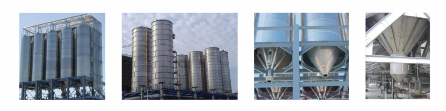 廣泛應用于石化、化工、建材、冶金、電子及新材料等多個行業。如PP、PE、PC、PVC、環氧樹脂、石墨粉、合金粉、催化劑、塑料增塑劑、電解二氧化錳料粉等行業的大規模摻混操作,料倉體積有30m3、50m3、150m3、250m3、500m3、1000m3等不同規格。